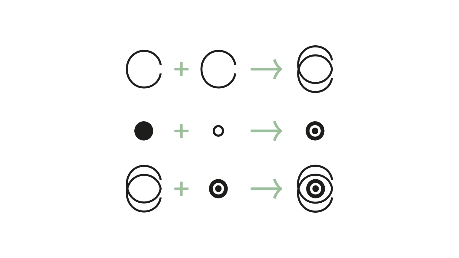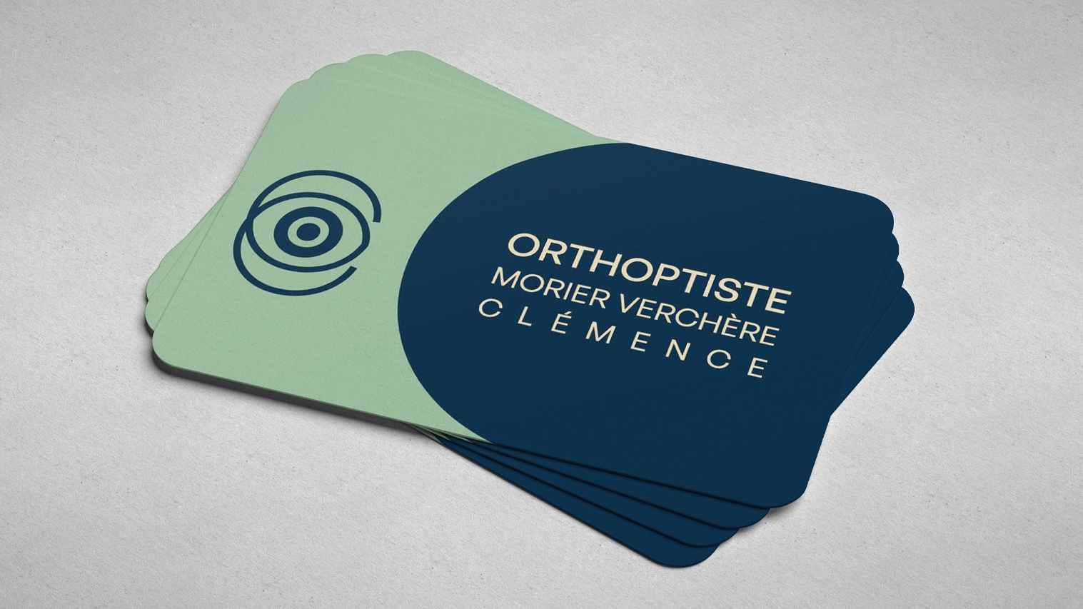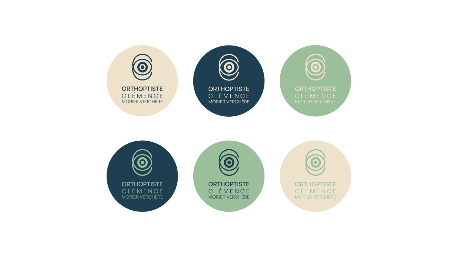 Identité visuelle d'un cabinet d'orthoptiste. Le logotype est conçu sous la forme d’un monogramme, une composition graphique élégante qui combine les initiales du cabinet : C pour cabinet et Clémence et O pour Orthopiste.