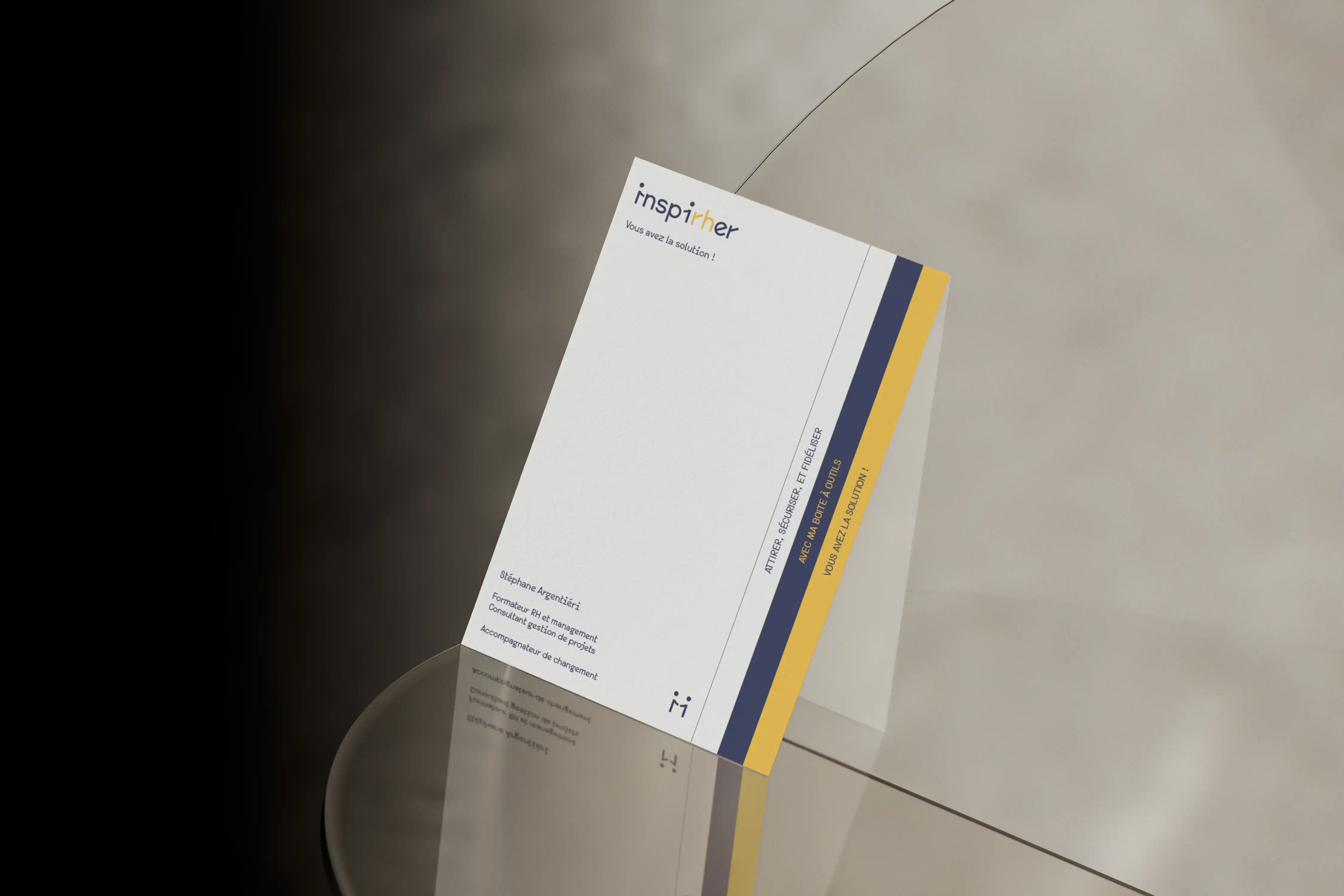 inspirher est un cabinet de conseil en ressources humaines pour les entreprises et les organismes publics. Le logotype est créé par les lettres « i », il représente deux personnages afin de symboliser les échanges ainsi que l’accompagnement proposé par l’entreprise. Le choix typographique s’est porté sur la Heal the web A de Jakub Kanior, pour ces lettres qui ressemblent à des connexions, des réseaux à travers les formes géométriques.
